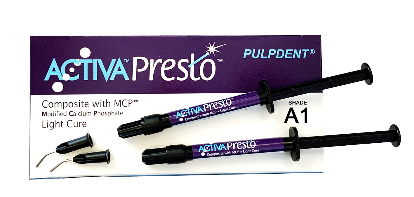 Pulpdent Activa Presto Universal is a bioactive, stackable composite designed for fast, reliable, and long-lasting dental restorations. Its universal shade offers excellent aesthetic results, while the bioactive formula helps replenish minerals and release fluoride, supporting enamel and dentin health. Activa Presto is stackable, making it ideal for posterior and anterior restorations requiring both strength and esthetics.