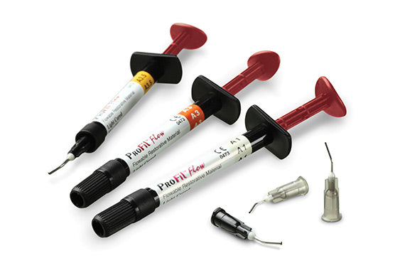 The Silmet ProFil Flow Syringe Kit is a premium, light-cured flowable composite designed for high-precision restorative dentistry. Its low-viscosity formula allows easy adaptation to cavity walls and intricate areas, ensuring optimal marginal sealing and smooth surface finish. Supplied in 4 x 1 g syringes, this kit is ideal for both anterior and posterior restorations requiring accuracy, durability, and aesthetic results.
