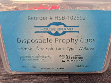 Disposable Prophy Cups, Silicone, Extra Soft, Hot Pink, Latch Type, Webbed, 144/Pk HSB-102502