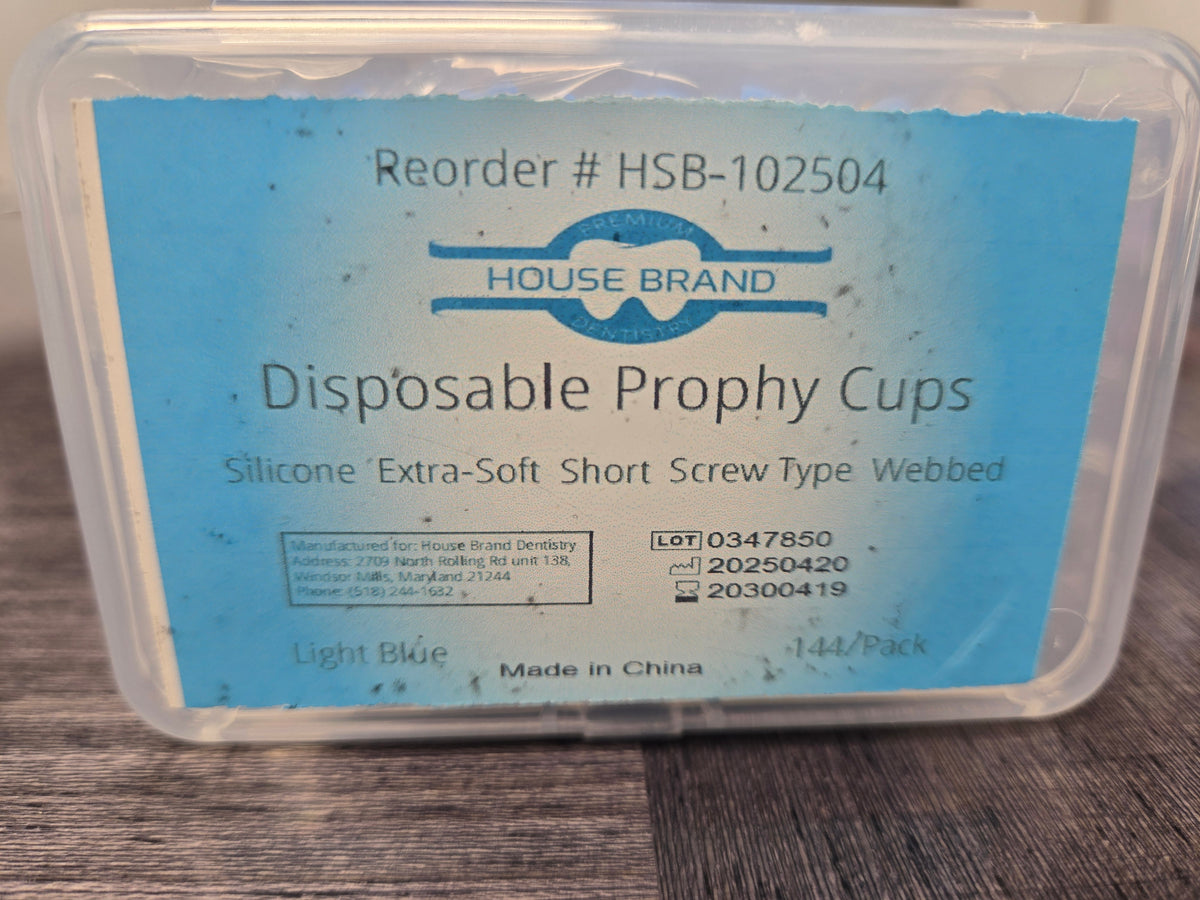 Disposable Prophy Cups, Silicone, Extra-Soft, Short, Light Blue, Screw Type, Webbed, 144/Pk HSB-102504
