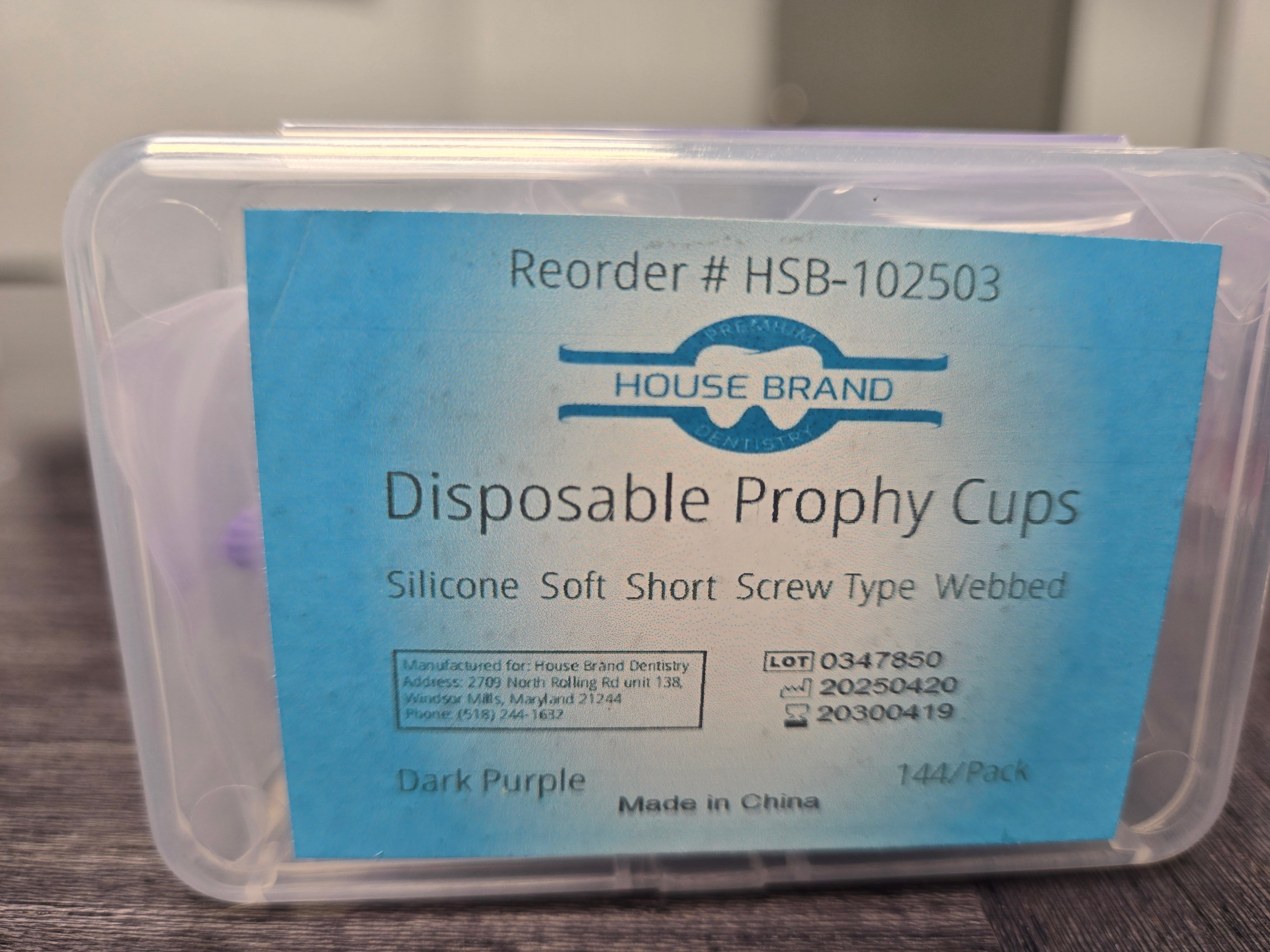 Disposable Prophy Cups, Silicone, Soft, Short, Dark Purple, Screw Type, Webbed, 144/Pk HSB-102503
