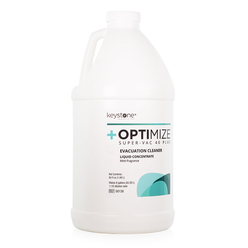 Latest generation of concentrated evacuation cleaner. Powerful multi-enzyme cleaner that deodorizes as it cleans with a pleasant mint fragrance. EPA-compliant and safe for use with amalgam separators. The non-foaming, environmentally-friendly, neutral pH formula dissolves organic fluids and debris. Recommended for daily use to maintain efficacy of evacuation equipment. Makes 8 gallons of solution.
